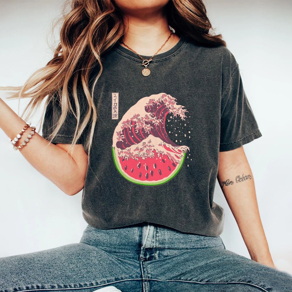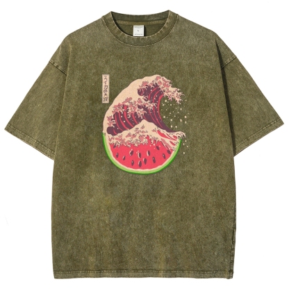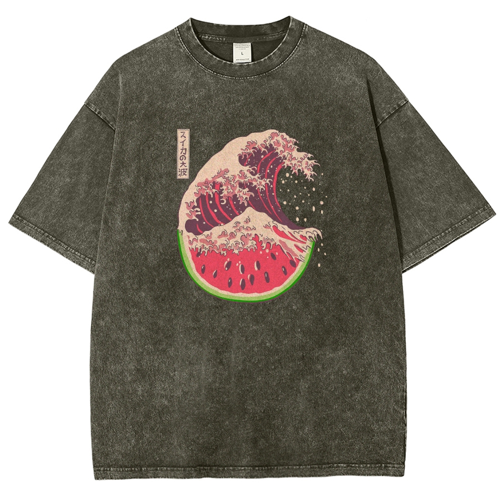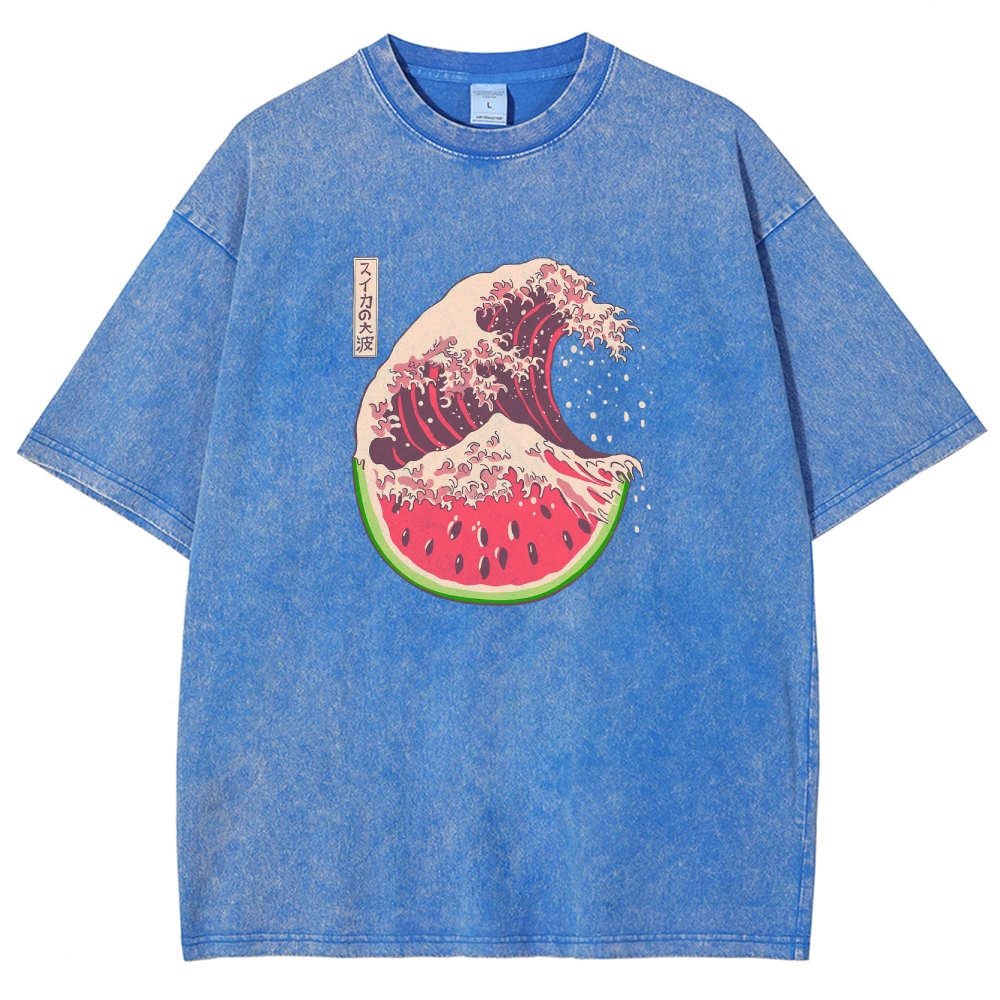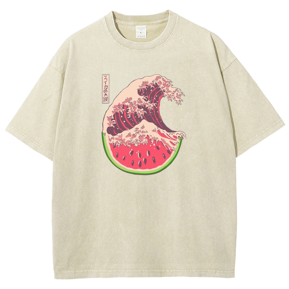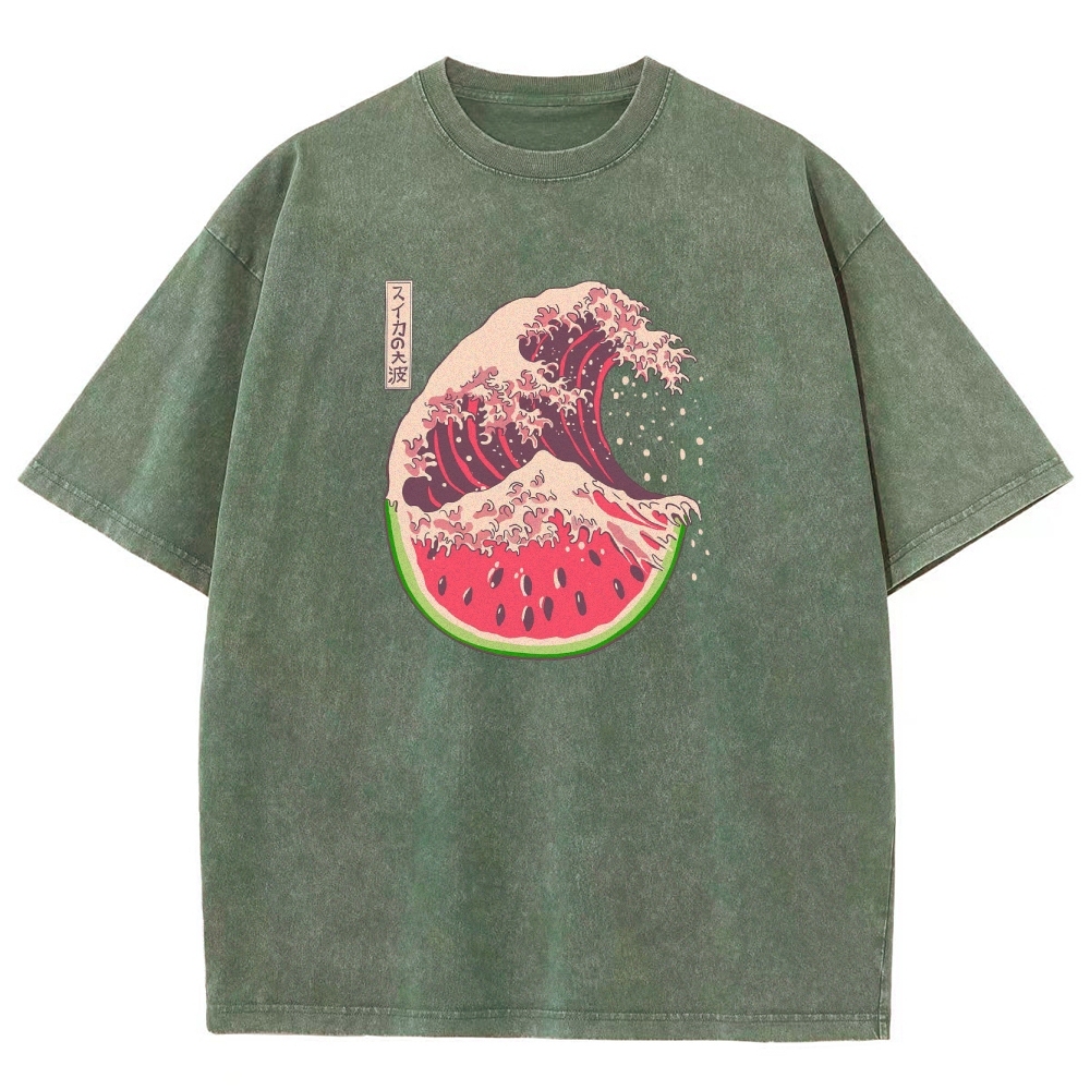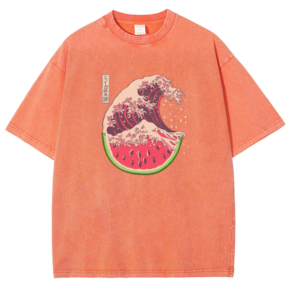 Watermelon Hokkaido Wave Unisex Fit Washed T-Shirt