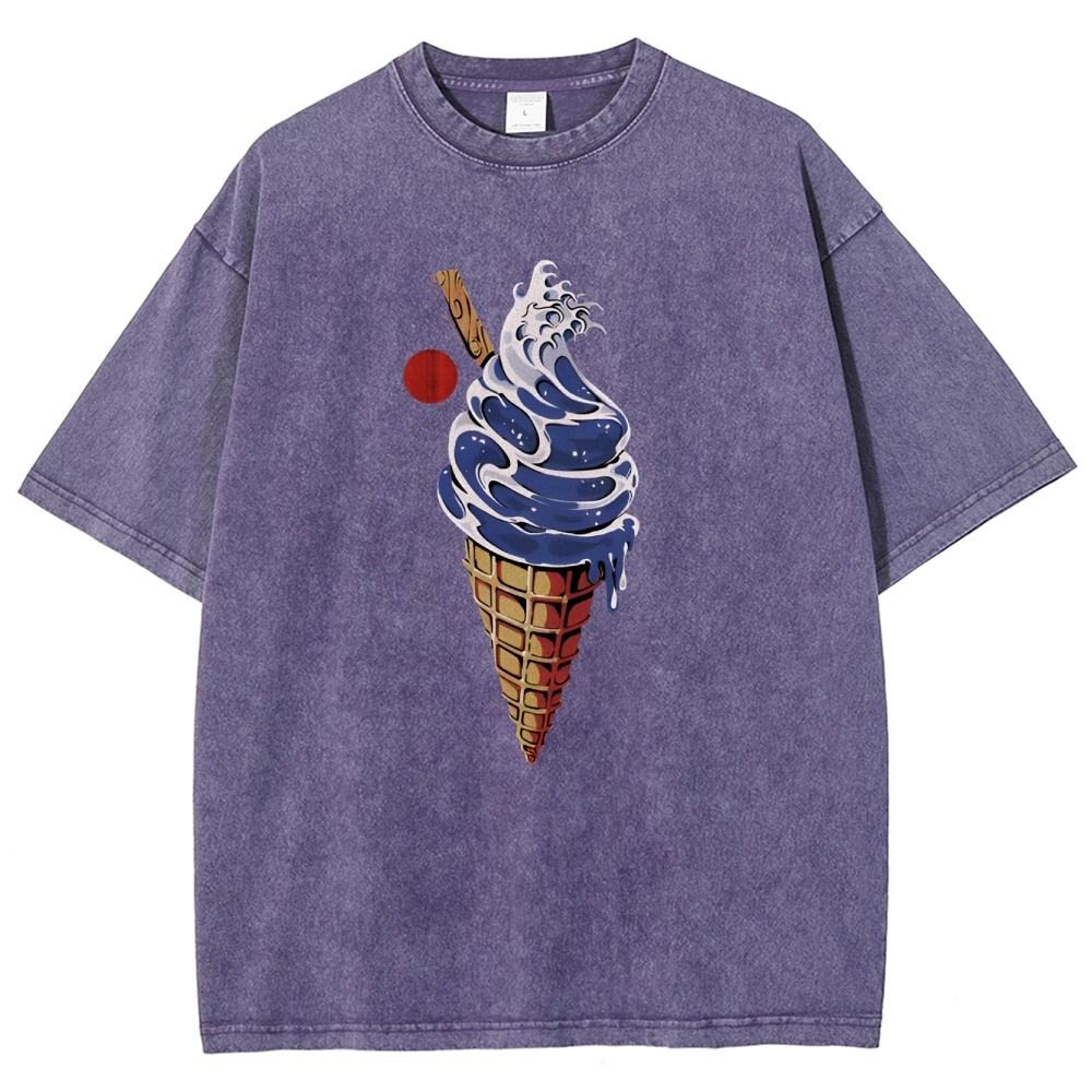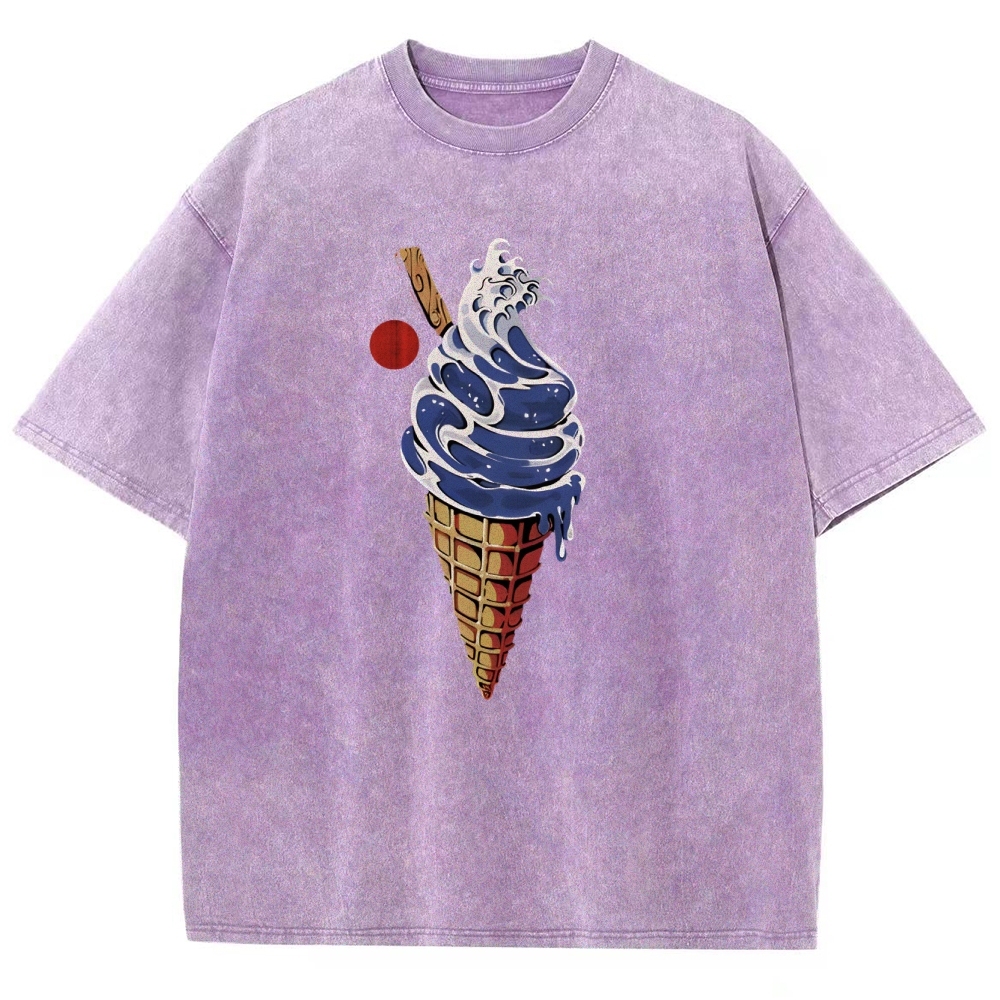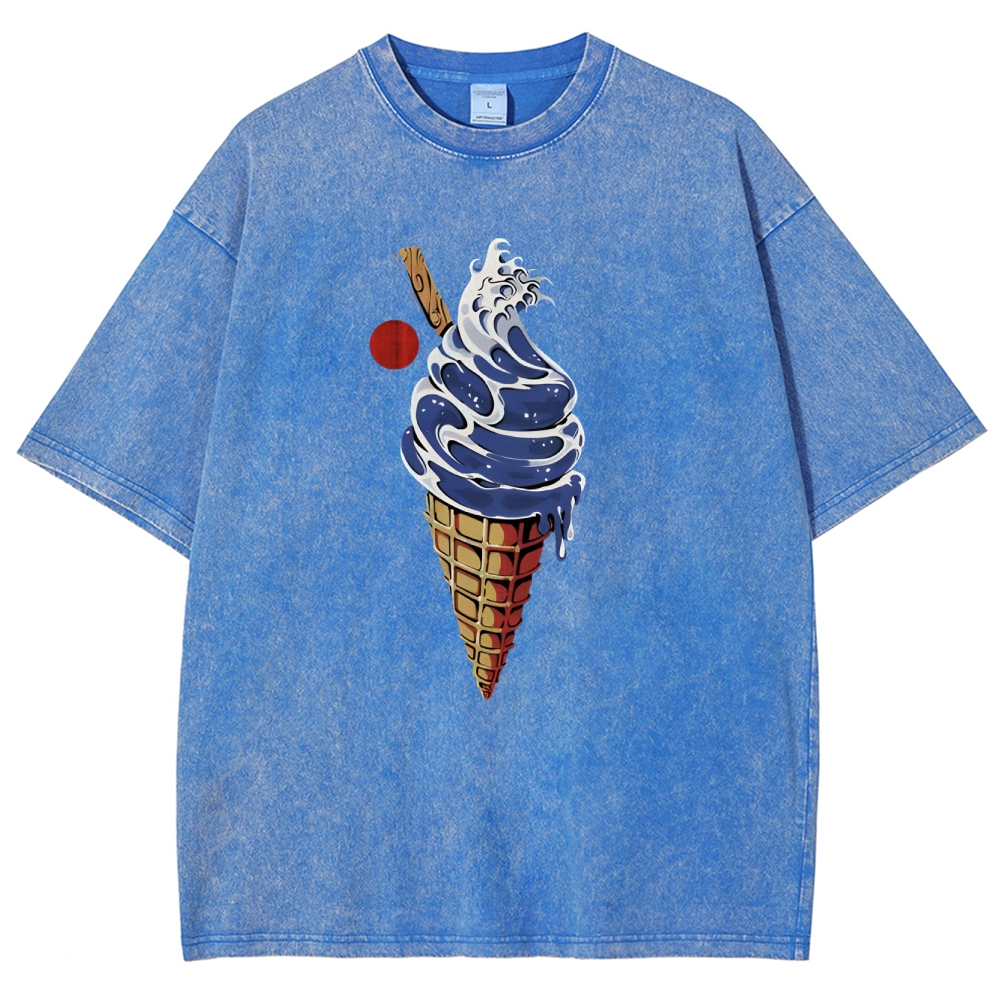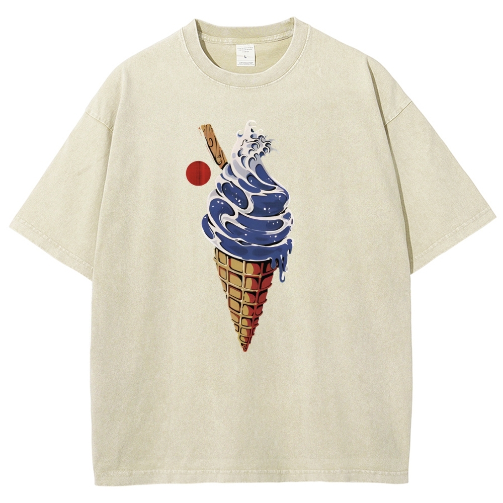 Wave Ice-cream Washed Vintage Short Sleeves T-Shirt