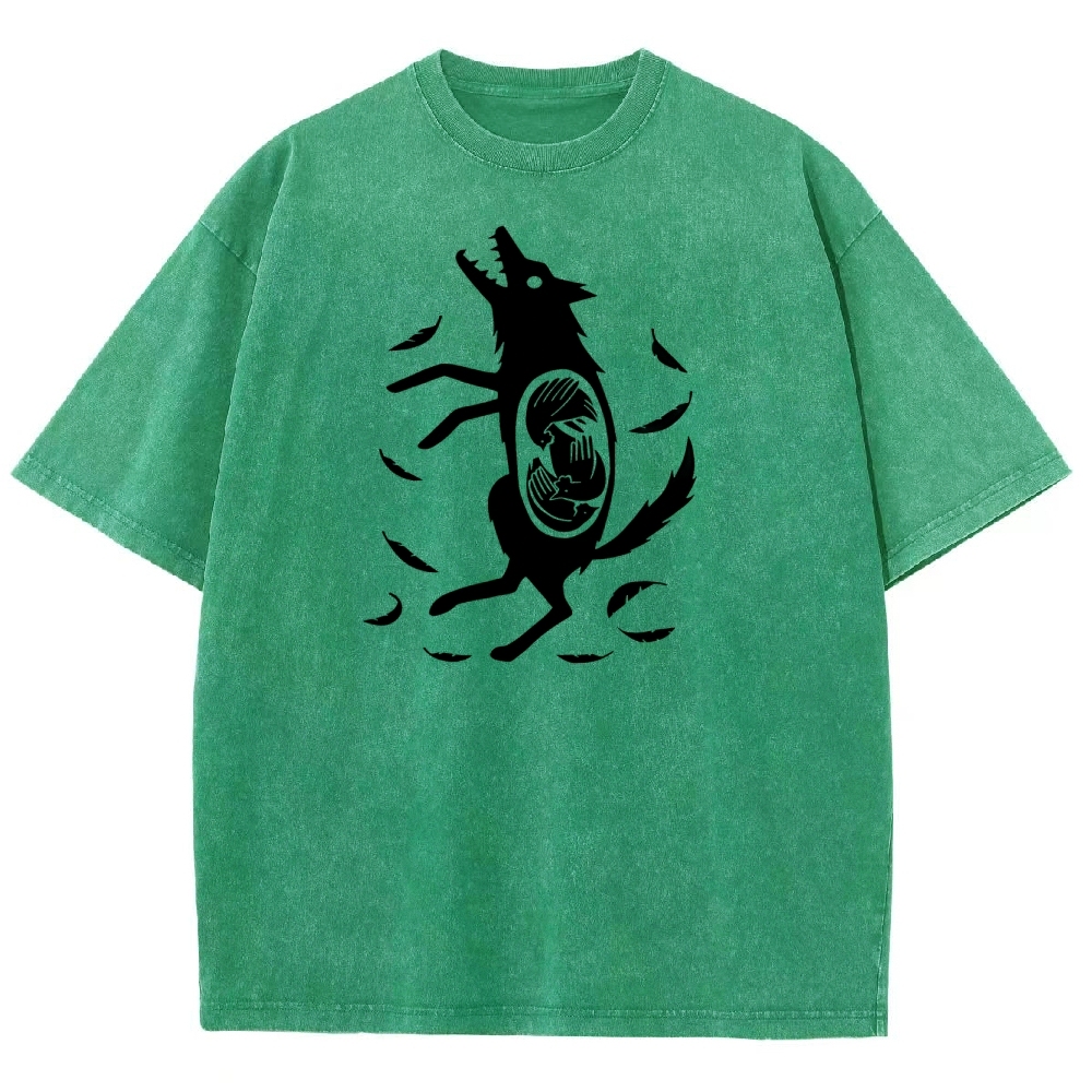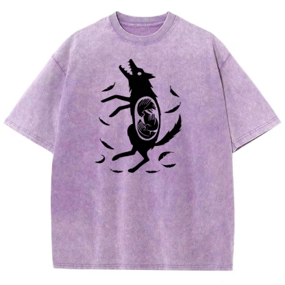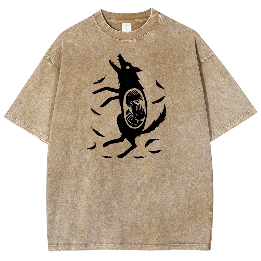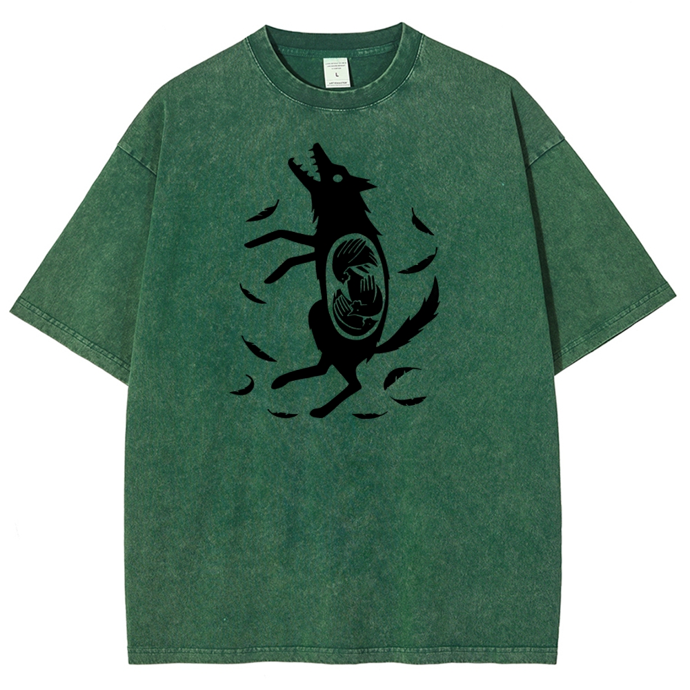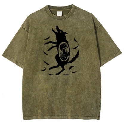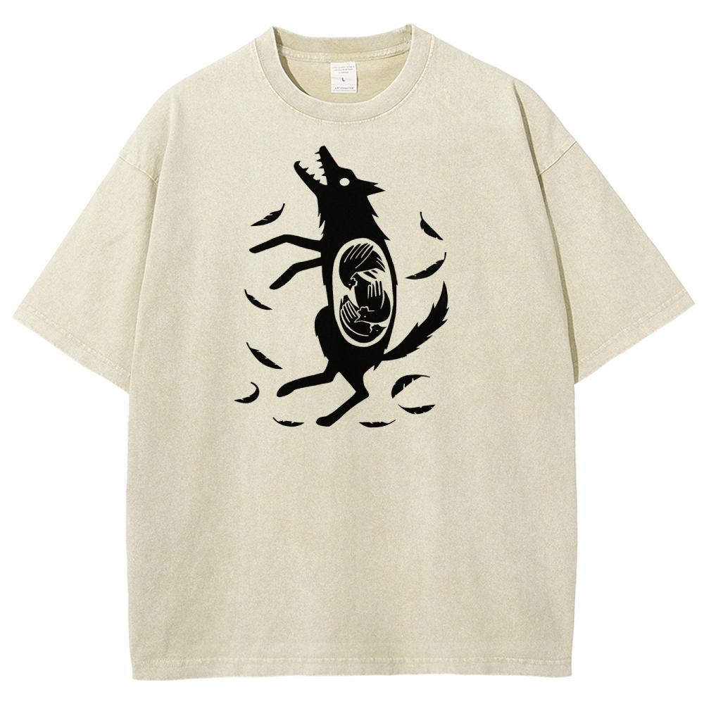 Wolf Pattern Washed Vintage Short Sleeves T-Shirt