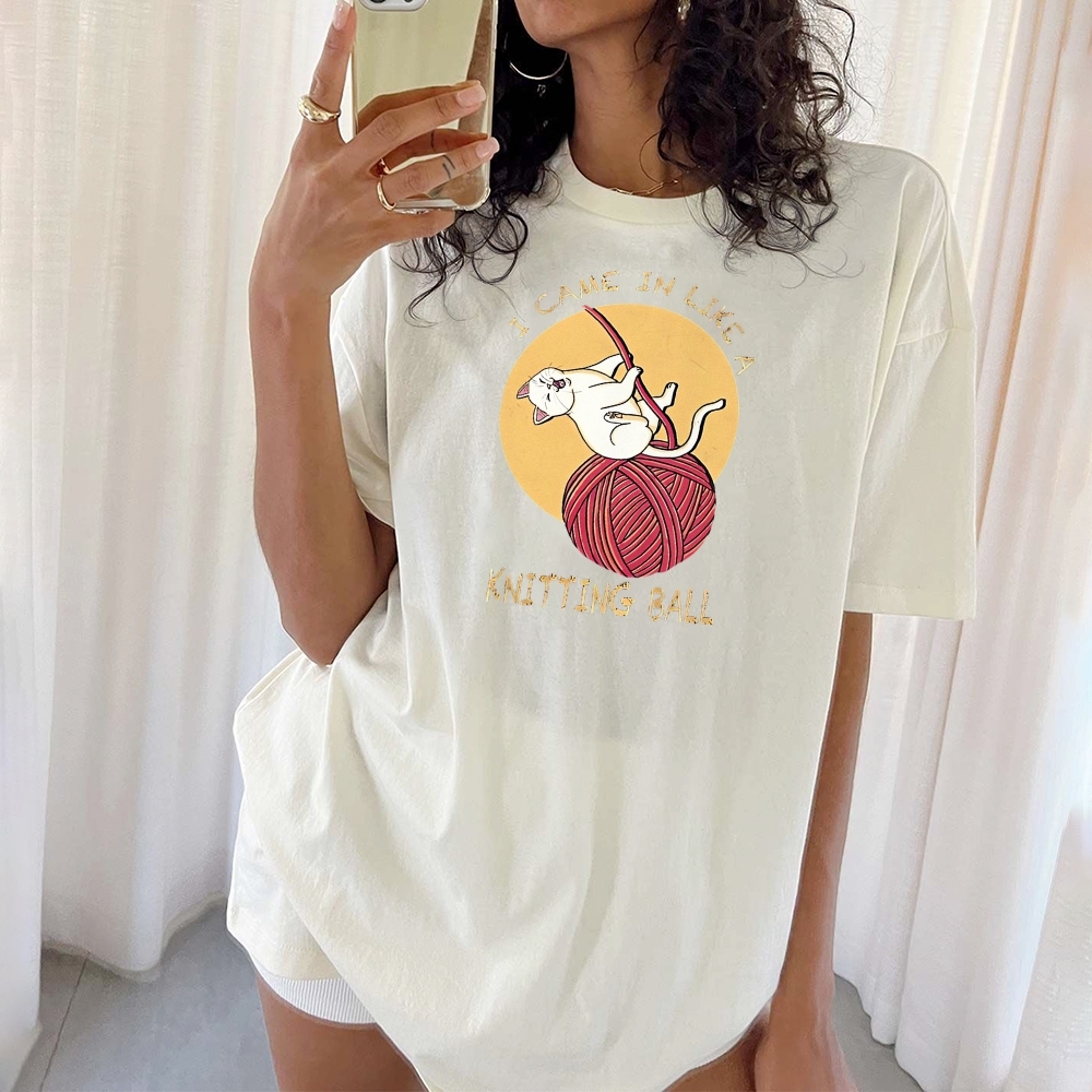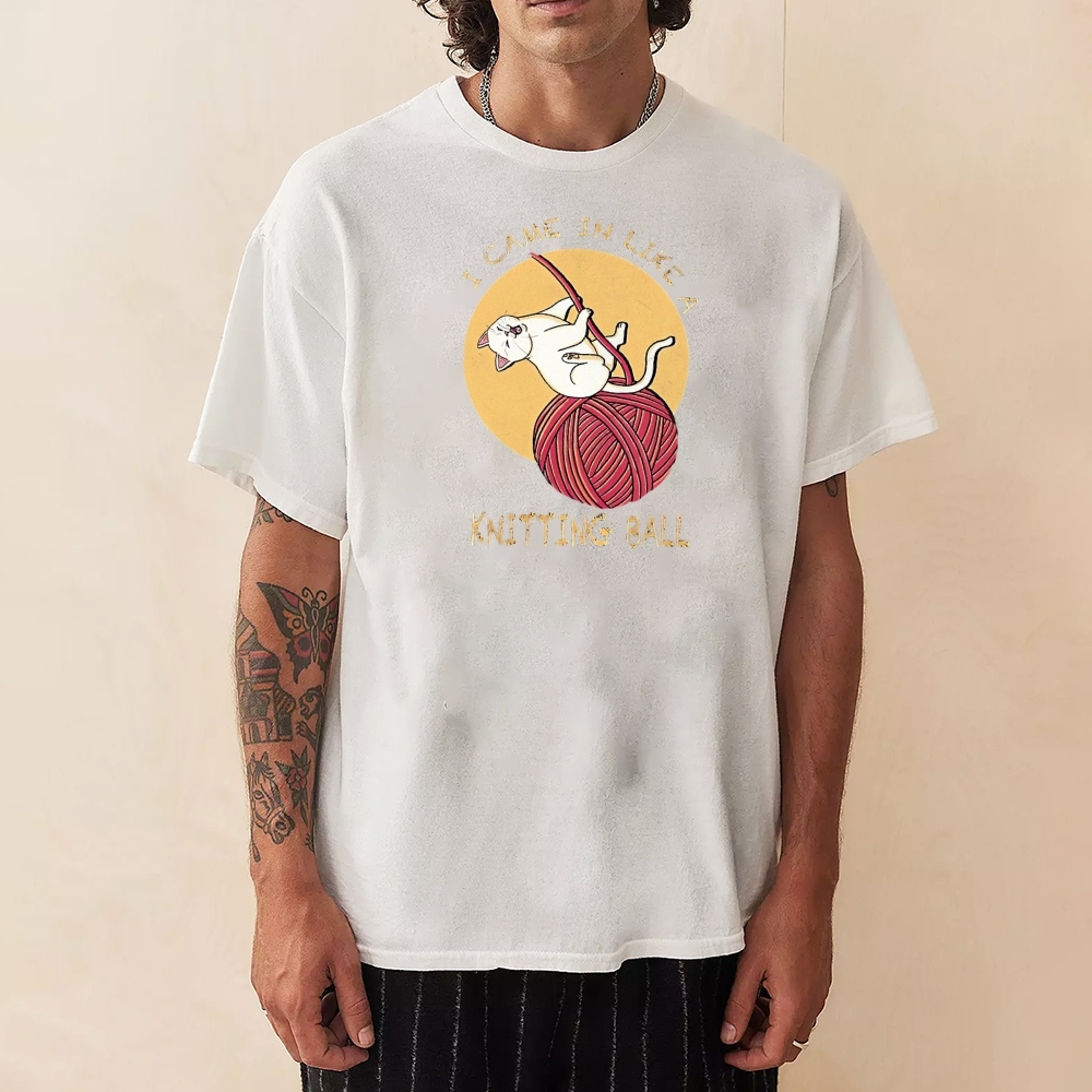 Wool Ball Cat Pattern Unisex Prints T-Shirt
